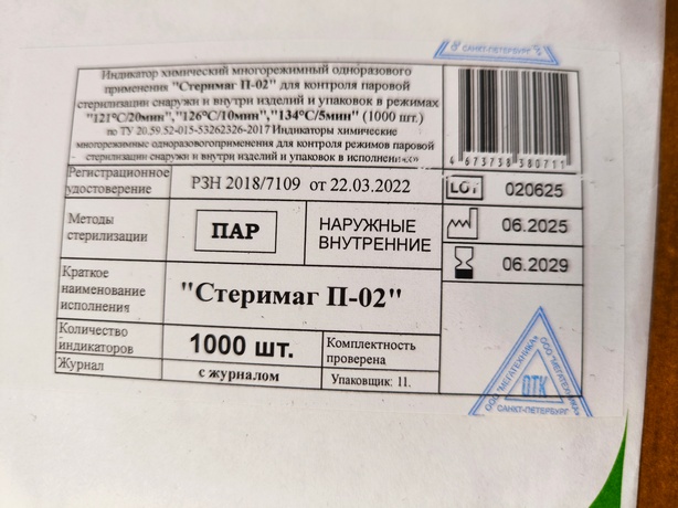 Медицинское изделие Индикатор химический для контроля процессов паровой стерилизации, многопеременный "СТЕРИМАГ-П-02" (РУ № РЗН 2018/7109 от 22.03.2022) соответствует классу 4 по ГОСТ ISO 11140-1-2011.