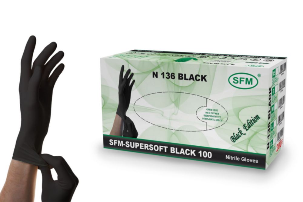 Перчатки черные нитриловые SFM SUPERSOFT N 136 BLACK текстур. 200шт., S.