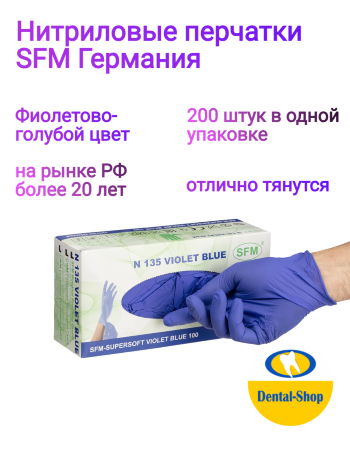 Перчатки нитриловые (200 штук) SFM фиолетово-голубые, р XS (Германия)