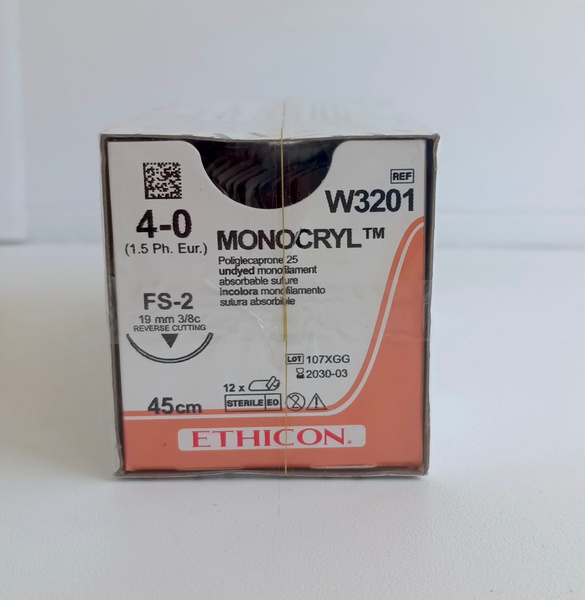 MONOCRYL* – монофиламентный синтетический рассасывающийся шовный материал. Нить MONOCRYL* очень мягкая и эластичная, удобная в обращении.