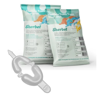 Двойные аппликационные капы Sherbet предназначены для аппликации реминерализирующих (фтор- и кальций-содержащих) гелей как в кресле стоматолога, так и в домашних условиях.